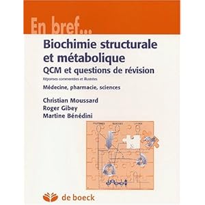 Cet ouvrage propose plus de 150 QCM et questions de révision en biochimie structurale et métabolique et leurs réponses commentées et illustrées. Couvrant les notions essentielles du programme, elles permettent à l'étudiant d'évaluer ses connaissances, d'identifier ses points forts et de combler ses lacunes grâce à des réponses précises, claires et brèves, abondamment illustrées. S'adressant aux étudiants des 1er et 2e cycles universitaires en médecine, pharmacie et sciences de la vie, cet ouvrage est un outil indispensable pour préparer et réussir examens et concours